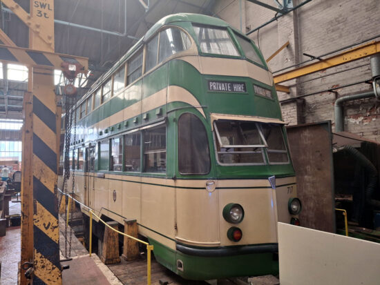 The first phase of the phased reintroduction requires the trams planned to operate the tours from October (announced as being the Western Train, Frigate and a Balloon Car) to be assessed before they can then be moved to Starr Gate Depot. To aid this 22nd July 2025 saw a bit of a shunt with the Frigate HMS Blackpool and Balloon 717 moved from the main depot building (which remains out of bounds) into the workshop/Tramtown Exhibition.
