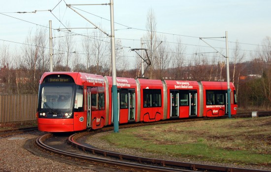 The original Dark Green, Black and Silver livery carried by the Nottingham Express Transit Incentro trams from new is no more following the withdrawal of 210 to receive the full refresh and the application of red vinyls on 206, presumably ahead of a new all over advert.