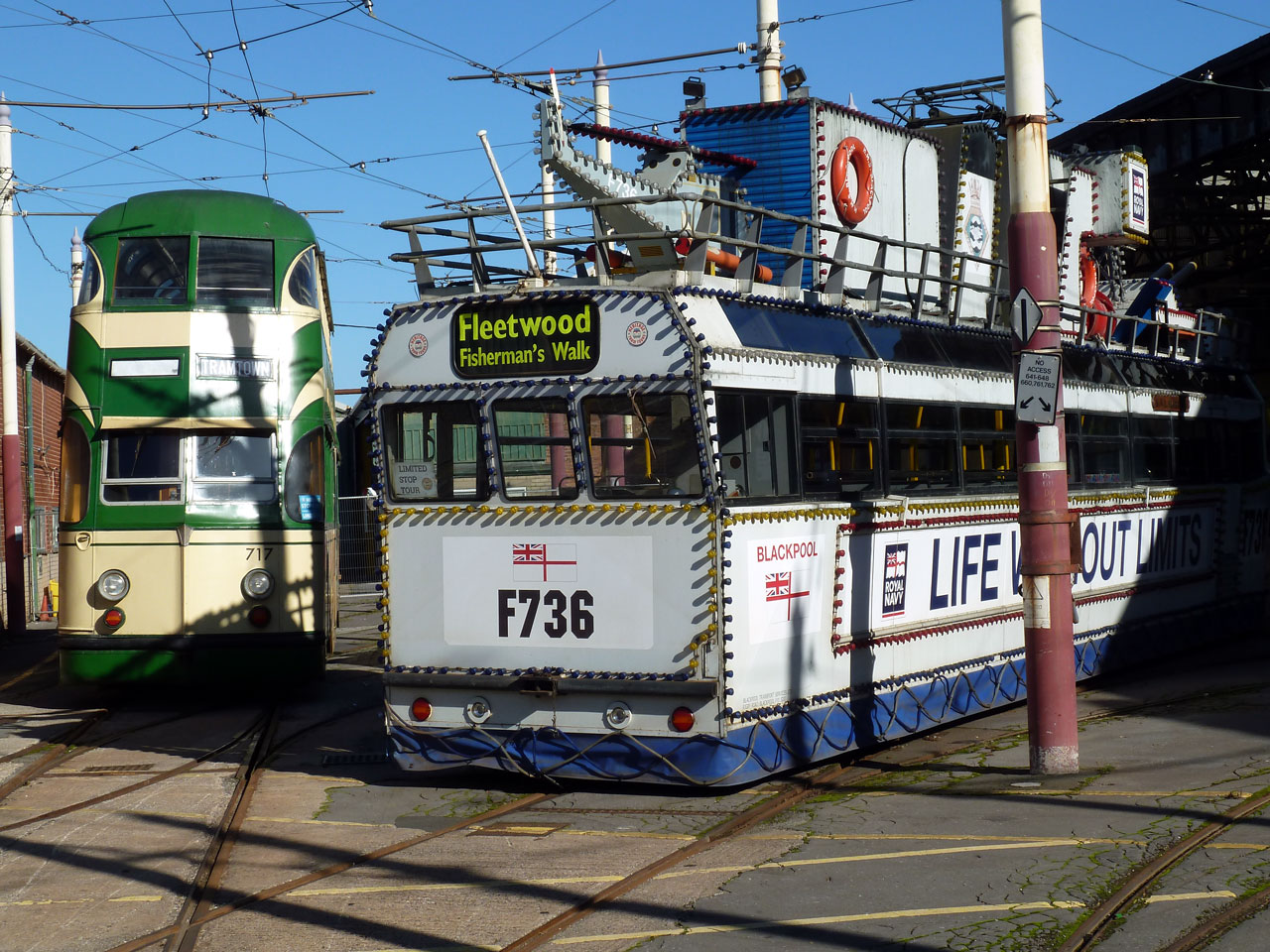 Not really directly connected to this story but it saves a completely new article with very little to say in it! The two trams which have been selected to be used on Illumination Tours during the Lightpool Festival have now been moved from inside the old Fitting Shop (now the Tramtown Exhibition) and ahead of their move to Starr Gate (which will presumably take place soon) are temporarily stabled on the depot fan. On a lovely sunny day 717 and the Frigate are captured on camera. They have also enjoyed a clean from Tramtown volunteers. (Photograph by Peter Dockerty, 22nd September 2025)