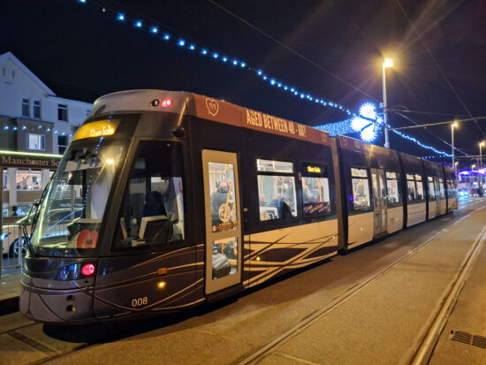 As we’ve seen regularly over the past few months, Blackpool Transport have been making an effort to remove expired adverts off the trams. Many of these have been on the trams for significant periods of time and its making a difference to the look of many of the trams and frees them for future advertising too. The latest tram where a start has been made on removing old adverts is 008.