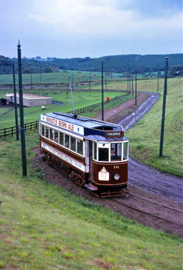 Beamish Museum Tramway opened in 1973, running between Foulbridge, the depot site, and the town. The museum itself had only opened in 1972 and in 1976 the tramway was still in the early stages of development. The destination blind of trams running northbound shows Rowley Stn, which suggests that the first short extension into the town itself may not have opened by that time. The service over this short section of route was operated on 30th May 1976 by a single car and the site looked remarkably undeveloped – as well as quite muddy and wet!