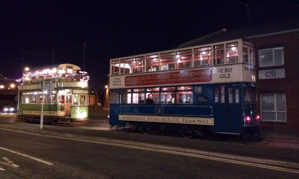 The following photos show the two trams on this special night, and were taken by John Hewitt of the Merseyside Tramway Preservation Society.