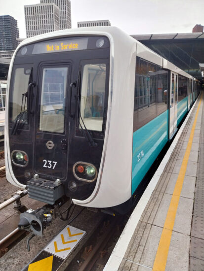 Not yet reported as having entered is the first numbered of the B23s – 201. Its seen here in a special testing livery when seen at West Ham being used for tests. (Photograph by Phil Sargent, 9th October 2025)