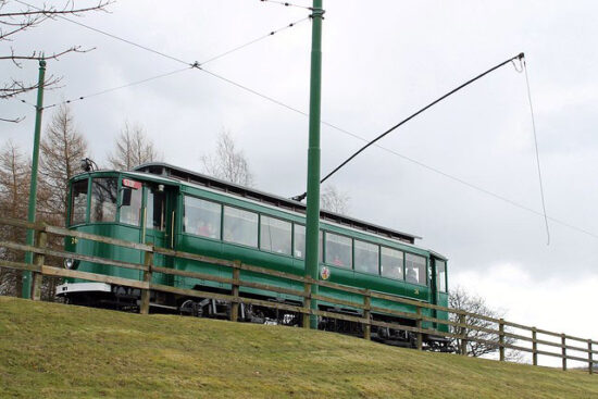 In this photo – taken 5th April 2013 – we see 26 on the Beamish Tramway circuit running alongside the Events Field, or it would be running if it hadn’t had a dewirement with the trolley pole seen in mid air.