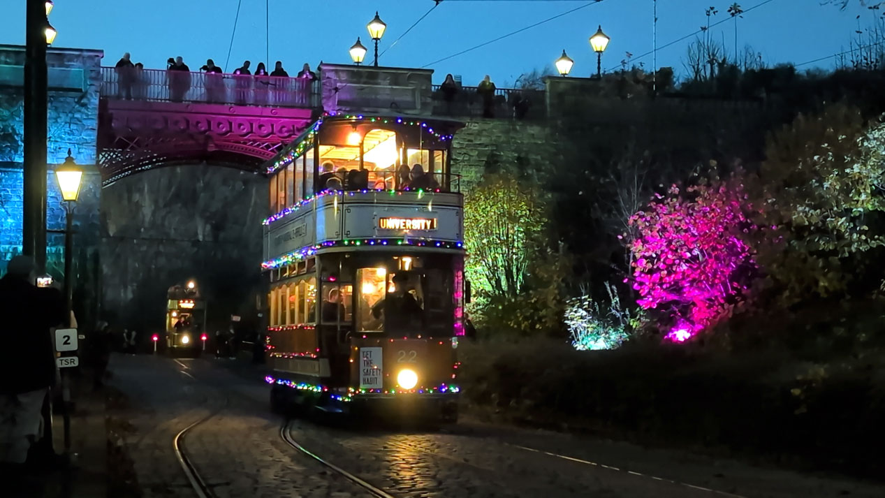 The Crich Tramway Village ended 2025 in style once again with, for the second year in a row, a special premium event taking place over the weekend of 8th and 9th November. This year branded as “Tramlight” the idea behind the event is fairly simple (even if the efforts behind the scenes to make it possible are anything but simple!) – trams running after dark with special lighting effects and even illuminated trams!