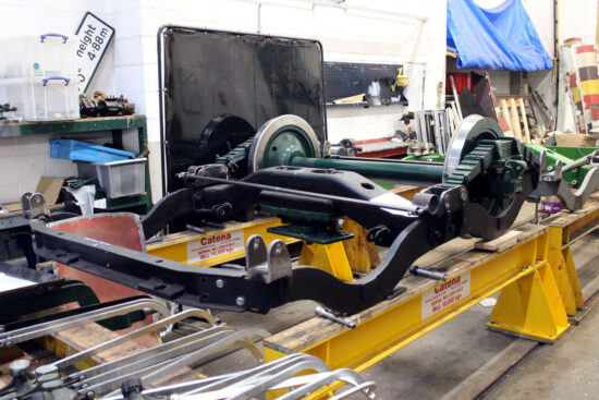As one Brush Car is set to take it easier, another is continuing its road to a return with the major TSO funded restoration of 298 progressing in the Workshop. The first wheelset has now been fitted into one of its bogies whilst work has also commenced on constructing the dashboard in the driver’s cab.