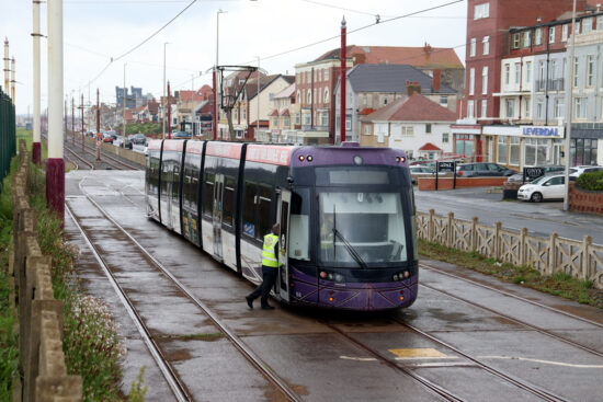 The revised layout at Bispham still retains a centre track, although its not used nearly as much as it once was. Indeed the standard timetable doesn’t see any trams due to turn there, with most of its use being when trams are on driver training. But on 26th May 2024 it was being used by Flexity2 014 which was in passenger service when taking a break. (Both Photographs by Gareth Prior)