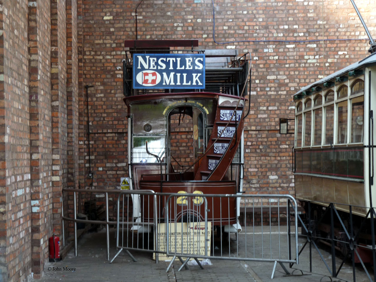 If the trams do ever return to the museum then the below photo shows one which certainly won’t be operating – as its standard gauge and the tramway is the regular Black Country gauge of 3’6”. This is Wolverhampton Tramways Company 23, an 1892 built double deck horse tram constructed at Loughborough.