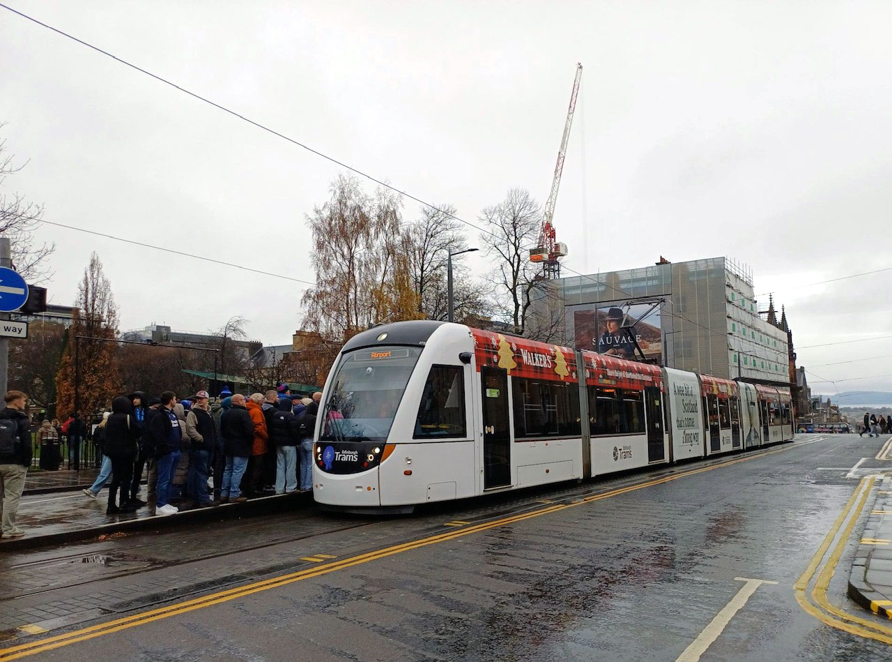 But things nearly didn’t happen as expected this time as flooding on Princes Street meant that no trams were able to travel along the major thoroughfare for a time until the flood waters subsided. During this time services still served Murrayfield but only from Haymarket Yards (from the Newhaven direction) and the Airport. Fortunately, it was possible for a full service to resume around about 1030 and so by the time most of the spectators would have wanted to try and get to the stadium it was business as usual once again!