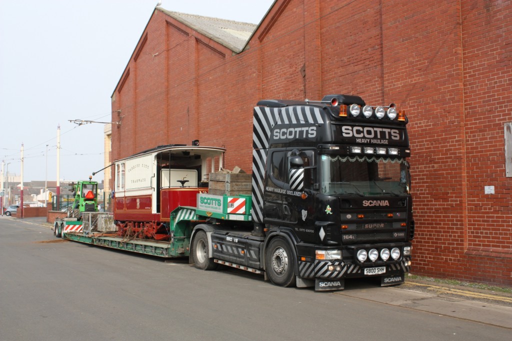 The most unusual departure of 2012 so far was Cardiff water car 131, seen loaded up on Blundell Street ready for its return journey to Crich. (Photo by Andrew Blood)