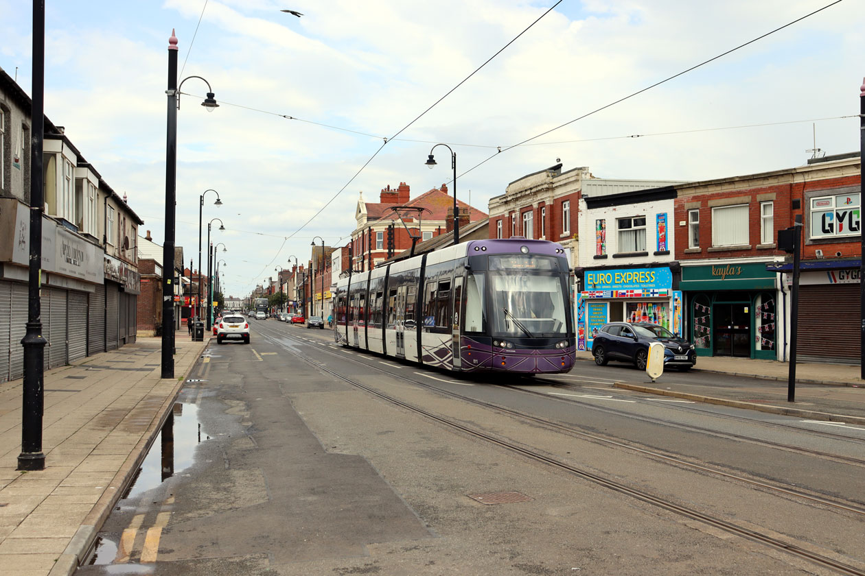 Trams continue to run on the same alignment today and here we see Flexity2 011 also approaching Fisherman’s Walk as it laves Lord Street – and street running. Fleetwood doesn’t look particularly busy in this 2nd June 2022 view as the tram is at the start of its journey south, with this being pre-North Station it will go all the way directly to Starr Gate. (Both Photographs by Gareth Prior)