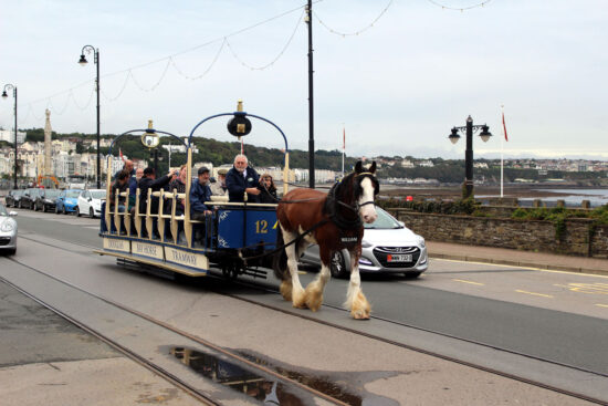 Toastrack 12 is the oldest surviving tram which was bought new by the Douglas Bay Horse Tramway being built in 1888. Whereas many other Toastracks which ran on the tramway were extended in length, 12 never received this work and so remains as originally designed. Finished in a blue and white livery it is designated a “museum car” and sees limited use in service, and we have its last recorded use as being during 2018 (although please correct us if that’s wrong!). It seen here on 8th September 2018 with William providing the horse power. (Photograph by Gareth Prior, 8th September 2018)