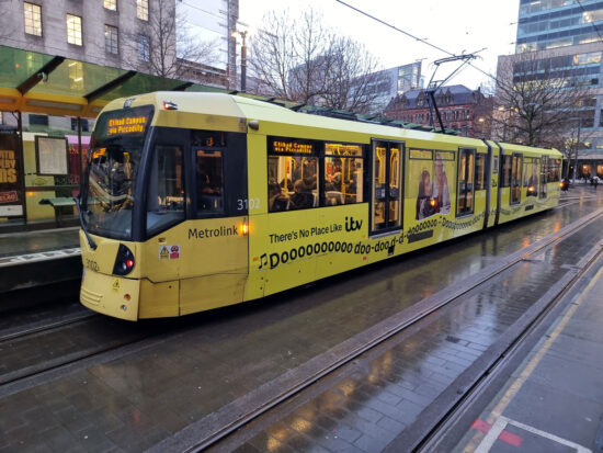 Following on from yesterday’s West Midlands Metro update, Manchester Metrolink has also already seen some advert changes in early 2026 with two adverts having been removed whilst one of the trams which has seen an ad go has now received a new design – the first new advert for the year on Metrolink. The trams involved in these latest changes are 3092 and 3102.