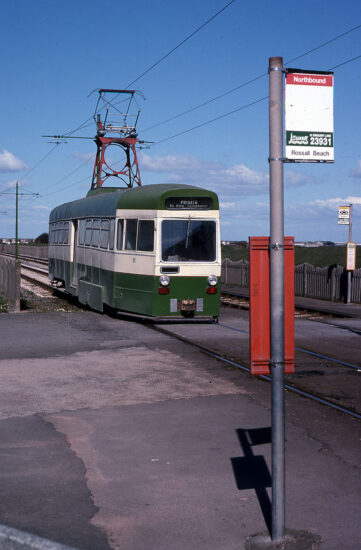 The below image was taken on the same day as the last couple of images in this series, and shows OMO 11 on test as it passes the tramstop at Rossall Beach. Built as English Electric Railcoach 268 in 1935, the tram (by then renumbered 615) was converted to an OMO car in 1975 and would remain in regular service up until withdrawal on 18th March 1993 – the last OMO to run in normal passenger service.