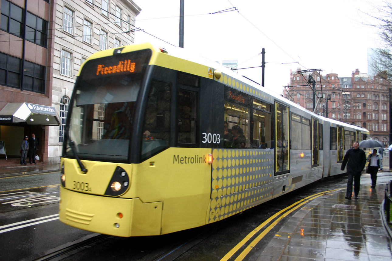 3003 was the second of the M5000s to arrive in Manchester when it was delivered on 12th September 2009. By 29th March 2010 it has entered service and was being used in service on this day with a working going into Piccadilly, seen just after leaving St Peter’s Square. The tram is in its original fleet livery and it still looks fresh and new. (Photograph by Gareth Prior)