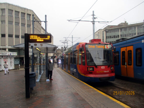 In recent months, South Yorkshire Supertram has been suffering from some well publicised staff shortages which led to the introduction of a temporary timetable from the end of November 2025. In order to resolve these issues they are continuing to recruit more drivers and to this end driver training trams are out on the network most days.