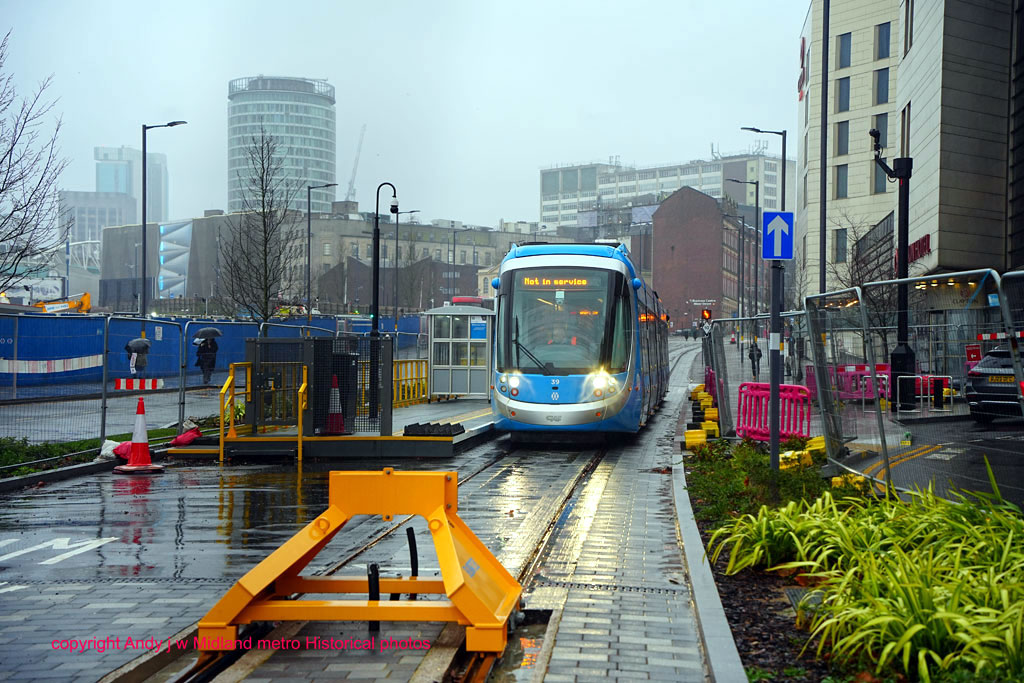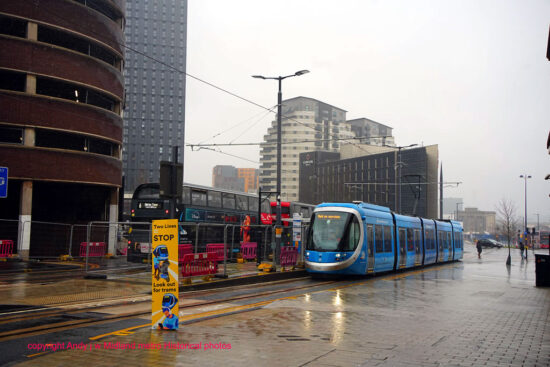 The next extension on a UK tramway due to open will be the short addition to the West Midlands Metro network from the Birmingham City Centre delta junction to Millennium Point. It had been hoped that this would be open by now, with official documentation saying it should have opened in December 2025 (with that being delayed from the original plan anyway), but issues found during testing with the signalling meant that this has been pushed back – and no new date has yet been mentioned But testing is continuing as we see in this pictorial update. Andy Walters is the photographer.