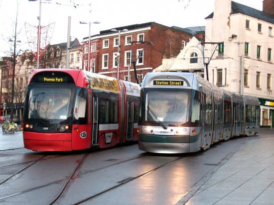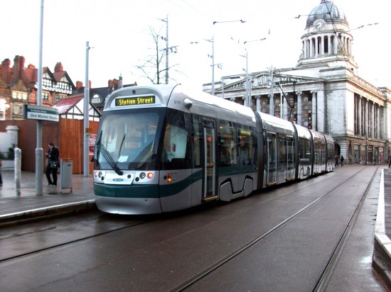 Nottingham Express Transit Incentro 210 returned to service at the start of January 2014 following the completion of its refurbishment. The vehicle now carries the revised mainly silver livery and means that the original dark green, black and silver has been consigned to the history books with just the ends of 201 still showing off these colours. Of the 15 Incentro trams only the aforementioned 201 and 208 remain to go through the refurbishment.