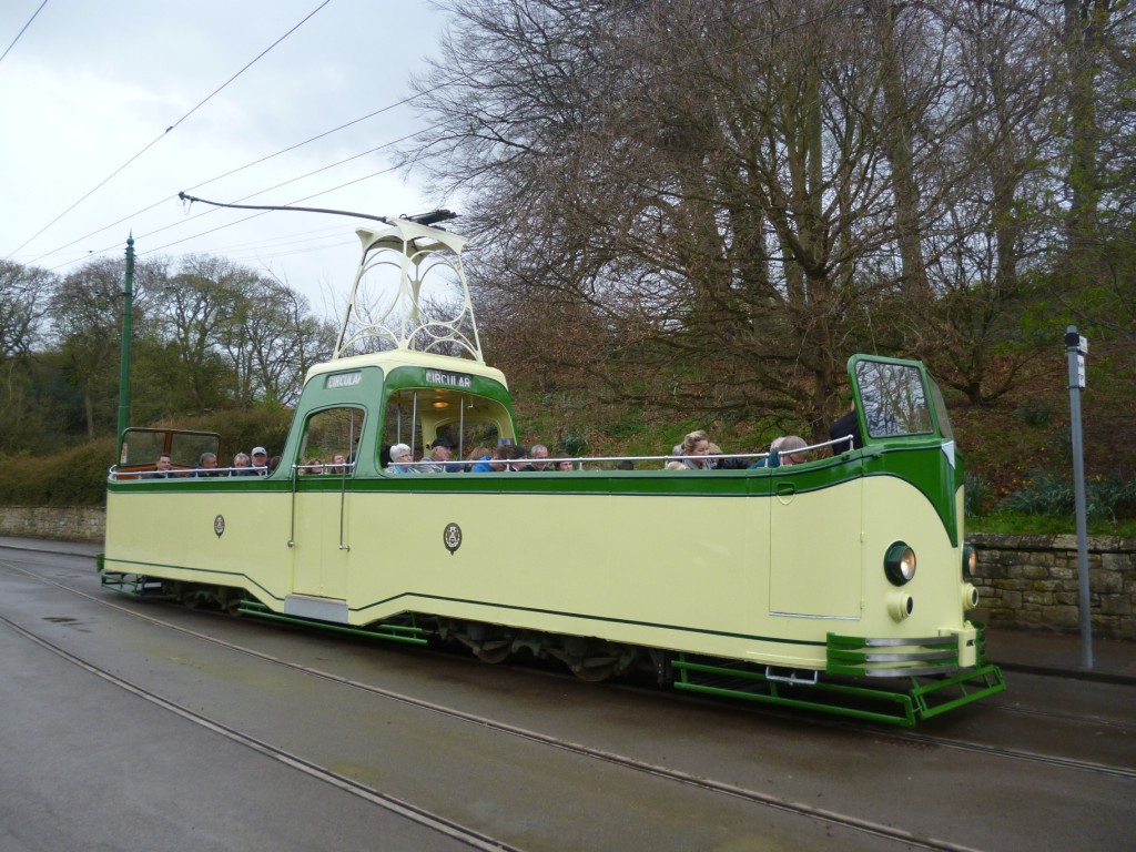 The Lancastrian Transport Trust’s preserved Blackpool ‘Boat’ car 233 made its passenger debut in its new home at Beamish, the Living Museum of the North, on Thursday 12th April for the first day of the Museum’s annual Great North Steam Fair. Since arriving there on March 1st, 233 has been radically transformed following over two years of storage at Blackpool. Its faded, dust-covered paintwork has been replaced by a gleaming coat of 1930s style green and cream, thanks to sponsorship from British Trams Online.