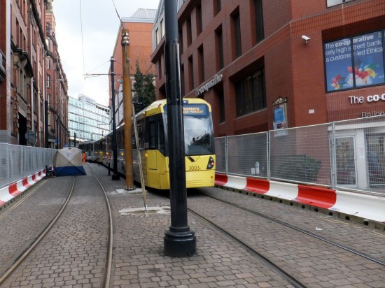 As extensively reported on British Trams Online due to major improvement works at Victoria, Manchester Metrolink services through this area are being altered for next nine months with single line working only possible through the station area.