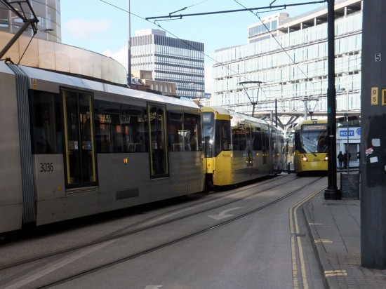 Single line operation commenced on Monday 24th February and saw the revised service in use for the first time. This sees a tram every 12 minutes run between Bury and Altrincham, a shuttle service between Bury and Abraham Moss every 12 minutes and a normal service between Rochdale Railway Station and East Didsbury. The Ashton-under-Lyne line will be served by trams from Eccles whilst services remain in operation from Altrincham to Piccadilly and MediaCityUK to Piccadilly.
