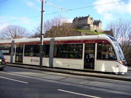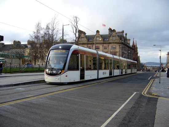Daytime test runs through Edinburgh city centre have continued during this week in the first stage of testing to enable the public to get used to the trams running with a major safety campaign launched by Edinburgh Trams to advise people how to act around the trams (not that it should probably be necessary!) With thanks to John Hampton we bring you some images from testing on 25th February.