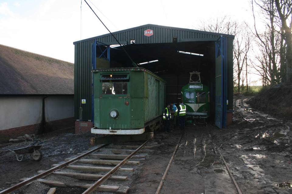Another small movement by a tramcar represented a giant leap forward for the Heaton Park Tramway on Tuesday 4th March, when the resident works car Blackpool 752 became the first tram to use the newly installed second track within the Lakeside Depot. Readers may remember that 752 has also been the first tram in the fleet to negotiate most of the trackwork laid in and around the new building, and previously became the first car to be stabled inside.