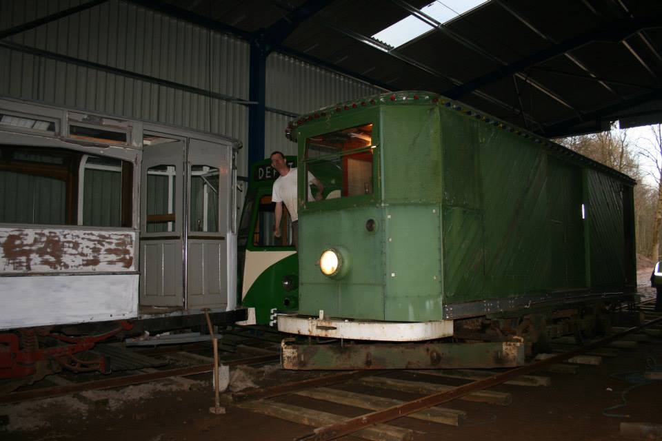 The works car is normally used to assist with the transportation of various equipment to the current work site at Lakeside, and this day was no exception. However, on arrival, 752 was used to help manoevure some of the new rails and sleepers into position. This enabled the track already laid inside the depot to be connected up to the existing track fan, and once the rails were secured in place, the tram was carefully driven inside and on to Road 2 for the very first time. This means that four trams are now housed safely inside the new depot, and with Blackpool Vanguard 619 expected to join them imminently it should not be much longer before all of the trams on site are undercover. This will obviously be a fantastic achievement for everyone who has worked so hard on this project, especially those who have continued to work in very difficult conditions during an exceptionally wet winter. Thoughts can then also turn to moving the last of the Manchester Transport Museum Society’s Blackpool cars, Balloon 702, to the park following a lengthy period of outside storage at Bury although the timing of this move is likely to depend on the availability of hauliers and a suitable wagon.
