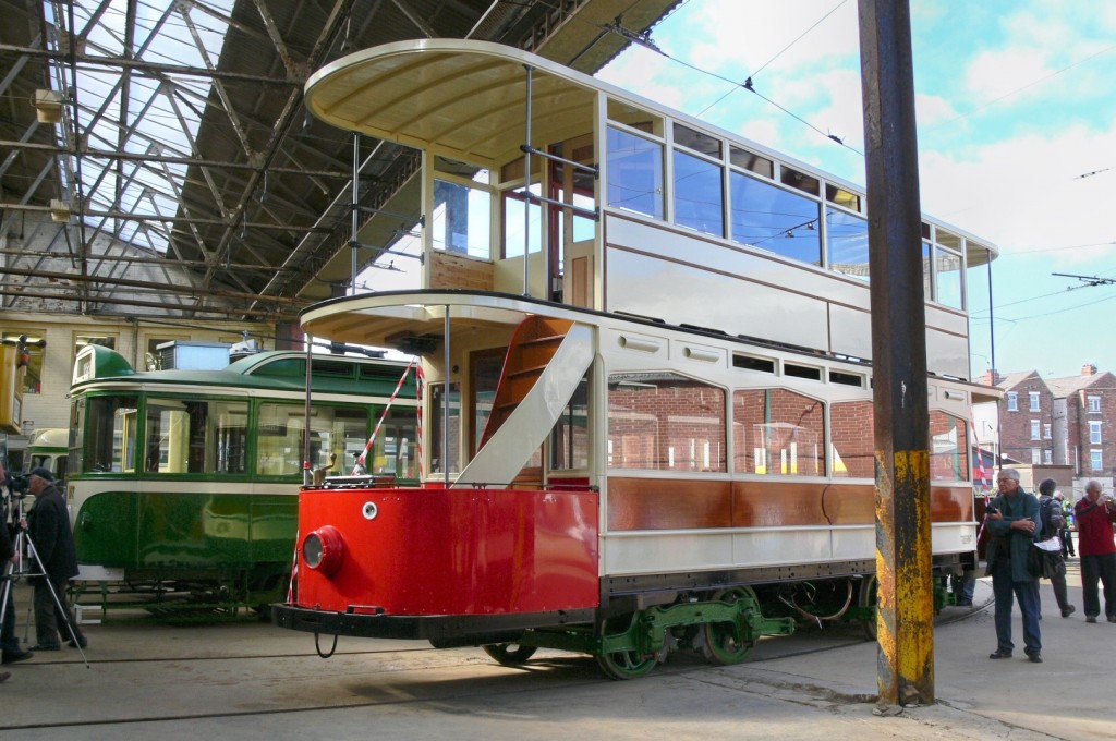 Those of you who follow the Blackpool tramway scene closely will no doubt be familiar with 143‘s sad story, but here is a re-cap: in 2002, the remains of this tram were donated to the LTT by Blackpool Transport, and moved to Brinwell Road. There it was extensively rebuilt, with the eventual aim being to run it in service at Blackpool alongside sister car 147. Work to restore the tram to its original appearance with open balconies and without driver’s windscreens was costly and the completion date was moved back several times, but in August 2010 the car was finally transported to Rigby Road. It was intended that Blackpool Transport would finish the restoration to enable 143 to star in the tramway’s 125th anniversary celebrations the following month; however, the tram still needed a considerable amount of work doing to it before it could carry passengers, and the company were unable to have it ready in time due to the need to commission other visiting trams for the special events. As a result, the 143 project was shelved and despite hopes that it would be completed at Rigby Road, the car has sat untouched in the depot ever since. Hopes that it may be included in Blackpool’s heritage fleet have now also been dashed amidst claims that it may require more work than was previously thought.