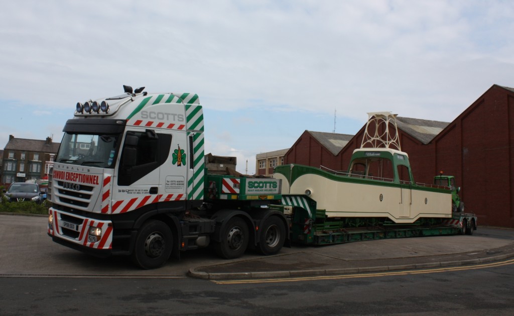 236 was loaded up in an incredible five minutes, onto a Scott’s Heavy Haulage low loader early on April 23rd and departed Blackpool at around 10:30am, arriving at Crich the same afternoon. Surprisingly, the tram retained its trolley tower for its road trip and was also loaded with various parts, some of which could be useful in maintaining the tram at its new home. The car was unloaded in the Tramway Street at Crich with Scott’s and TMS workshop personnel in charge of the operation, and a little help from the Blackpool electric locomotive which was called out to shunt 236 towards the depots. Of course, the Boat is in familiar territory having run at Crich in 1985 when it was exchanged for Blackpool Standard 40 – but this time it is set to stay there for good having been donated to the Tramway Museum Society. It has been beautifully restored to resemble its 1950s condition without driver’s windscreens, and has therefore been appropriately painted in original livery style, with the later modification of cream headlamps instead of green. It is not yet known when 236 will enter service but as the car has already moved under power at Blackpool since being overhauled, hopefully this will come sooner rather than later.