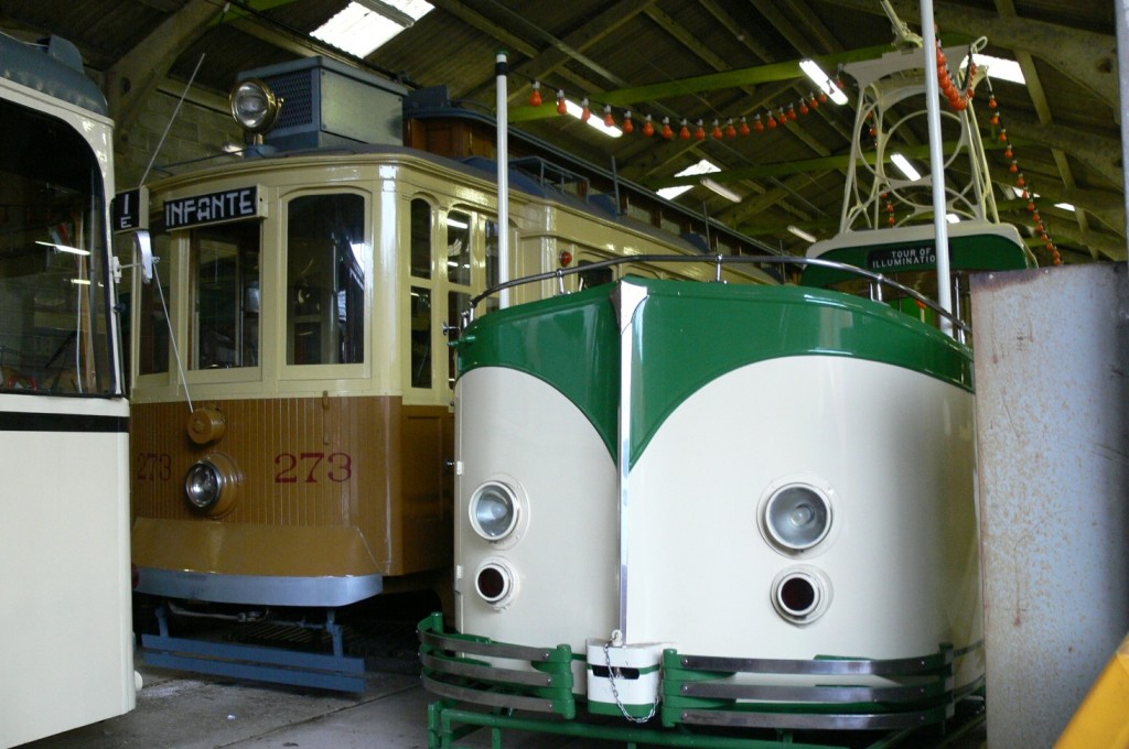 A previously unpublished image from the 'Big Shunt' at Crich earlier this year, with Oporto 273 & Blackpool 236 seen inside the depots. 236 is already in the running fleet, whilst 273 should shortly return following a period of disuse. (Photo by Andrew Waddington)