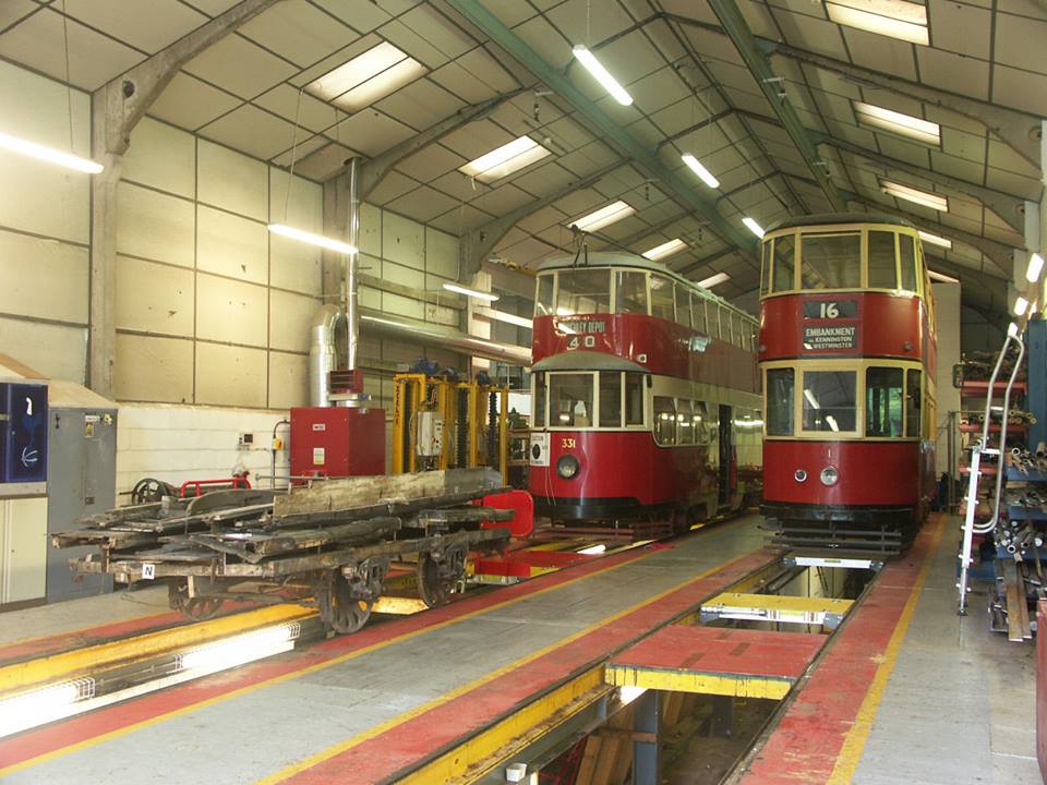 The tram was placed alongside another ‘modern’ London tram, Metropolitan 331, on arrival in the workshop. This tram is shortly to be lifted so that the extent of damage caused by a derailment incident which occured at Glory Mine last summer can be fully assessed; this will allow the work required to return it to service to be costed. Hopefully this will mean that 331 will be running again soon, as it is certainly one of the most distinctive trams in the operational fleet at Crich and its return would surely be much appreciated by many enthusiasts.