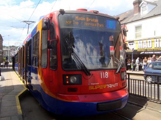 Stagecoach Supertram’s 116 has entered service carrying a new all over advertising livery although it isn’t a new livery for Supertram. The tram is now sponsored by East Midlands Trains and carries an almost identical livery to that as on 111, which still remains in service in this guise.
