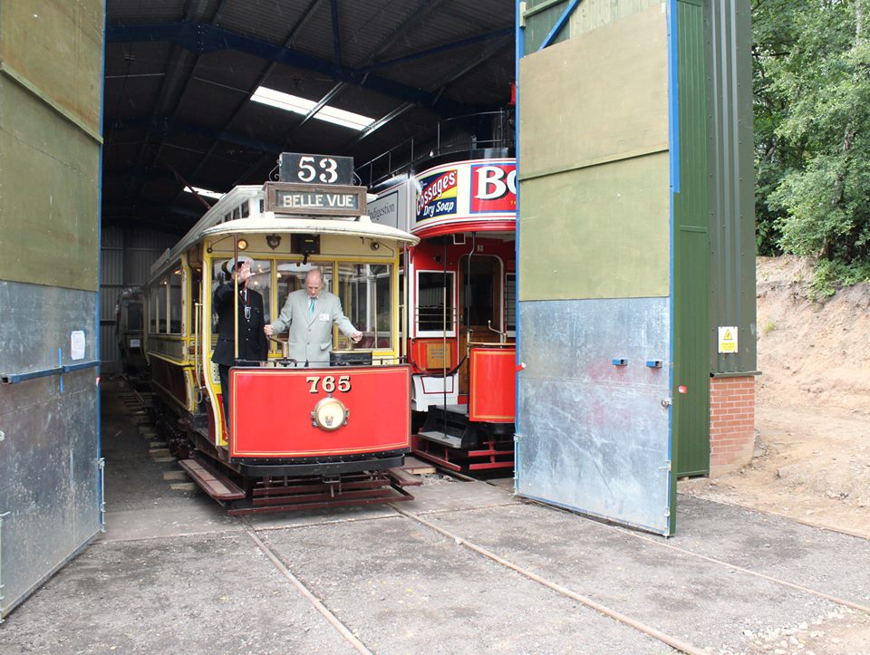 The relatively low-key ceremony was attended by invited guests, including working members, local councillors and representatives of other tramway organisations. These guests initially gathered in the tramway’s original depot before being ferried to Lakeside on Blackpool 623, whilst a brass band rode on Vanguard 619 to provide some musical accompaniment for the proud moment when the depot was officially declared open, after the usual speeches from various dignitaries. The architect responsible for the new building, Jeff Marshall, was then giving the honour of driving Manchester 765 out of the Lakeside Depot as its doors were flung open to reveal its contents to the assembled crowd. Inside three further local trams were available for inspection, with both Oldham 43 and Manchester 173 having had their protective covering removed for the occasion, whilst Stockport 5 was displayed prominently right at the front of the shed, ensuring that despite being out of action it was still able to play a major role in this historic event. This was also of course 765‘s first official duty since its recent overhaul, ahead of a full return to use on Sunday 6th July at the event to celebrate its centenary year.