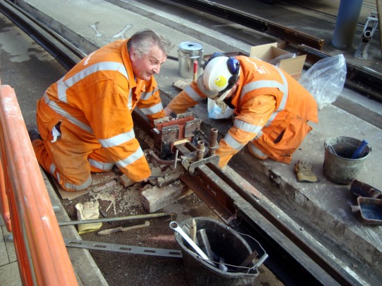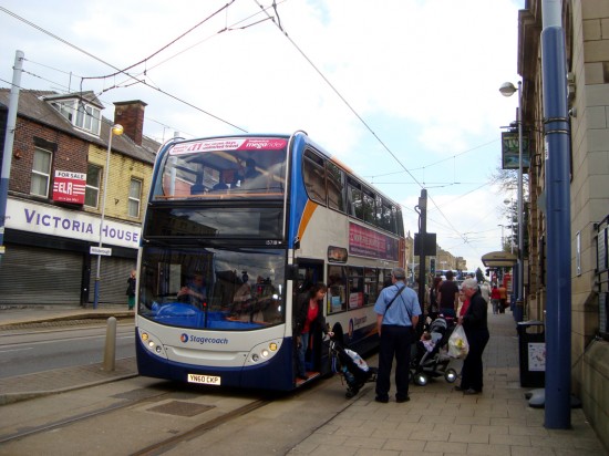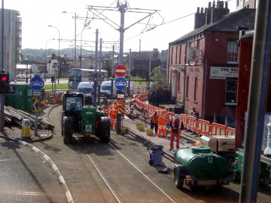 On Sunday 6th and Monday 7th May further engineering works were undertaken on Stagecoach Supertram. This time the work concentrated on the curve on the outbound track just beyond the Shalesmoor tramstop. For the first time the replacement bus service travelled down the section of tram reservation at Hillsborough. Click below for photos of the work.