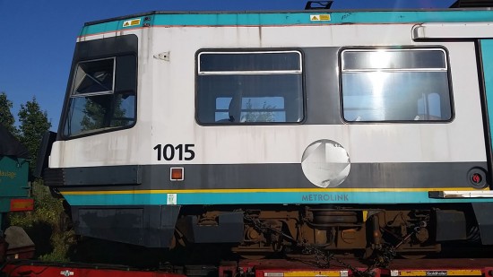 1015 becomes the tenth T68/T68A to be sent for scrapping and is a LRV which has had quite a few key moments in its all too brief history. It was actually the penultimate vehicle to enter service in 1992 as it was initially used as a source of spare parts to keep the other T68s on the road and was the second T68 chosen to be modified for use on the Eccles line in 1999 becoming one of the small fleet of T68Ms. It is also became the first T68 to carry a non-standard livery when it received advertising vinyls for GMPTE’s “Get our Metrolink Back on Track” campaign in September 2004.