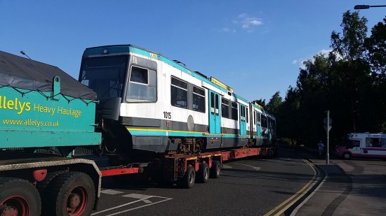 1015 arrived in Manchester on 27th March 1992, entered service on 2nd July 1992 and was withdrawn on 20th September 2012 (the ninth of the class to be taken out of service). After almost two years of storage the LRV finally left Trafford Depot on Thursday 24th July to be scrapped.
