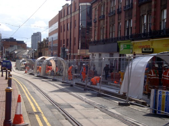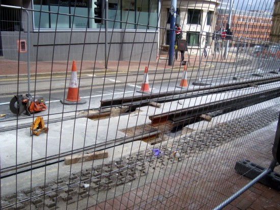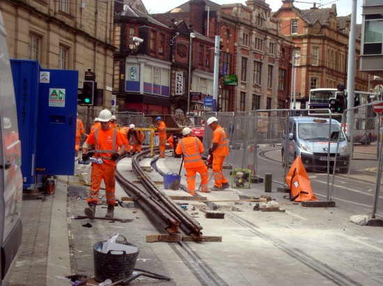 Rail replacement works on Stagecoach Supertram continues to make rapid progress with both Glossop Road and West Street seeing new rails installed over the past few days. On Glossop Road the rail was being replaced on the outbound track at the start of this week (this has now been completed) with attention now being turned to the remaining section on West Street just below City Hall tramstop outbound. Once this track has been replaced the whole of West Street and Glossop Road will have been completed.