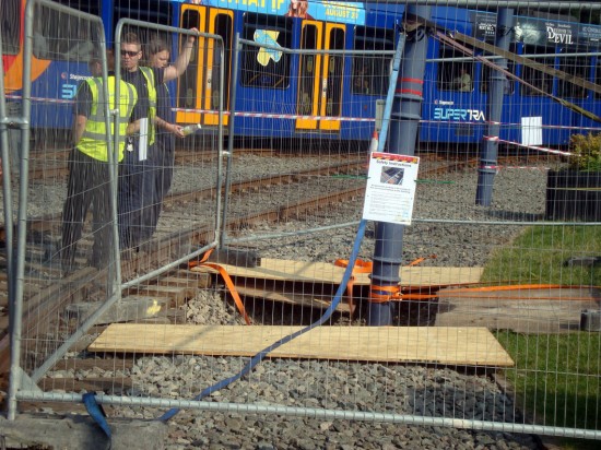 Structural engineers are due to undertake tests over the weekend on the hole which for quite a small hole is causing quite a lot of problems! Stagecoach Supertram bosses are obviously not too hopeful that these tests will lead to an immediate solution as they have decided to introduce a replacement bus service from Monday 8th September which will link Castle Square with Granville Road (one stop beyond Sheffield Station). This bus, running as R1, will run at the normal Blue route frequency (every 10 or 20 minutes depending on the time of the day) and will go via Sheffield Station.