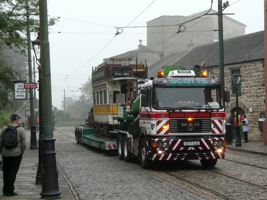 114 debuted in passenger service at Crich on 12th September and then ran faultlessly for five consecutive days, including over the ‘Electric 50’ weekend. It was then prepared for its long road journey back home, departing on the rather murky morning of September 19th – quite a contrast from the fine sunny weather which blessed its days of operation at the Derbyshire museum. The tram arrived back on home turf later the same day, and is expected to be back in service at Beamish within the next few days following its first ever loan period away from home. As usual, Scott’s Heavy Haulage provided the low loader used to transport 114 back home.