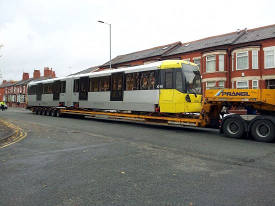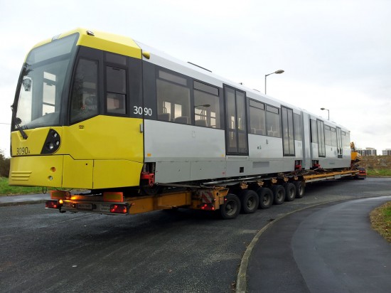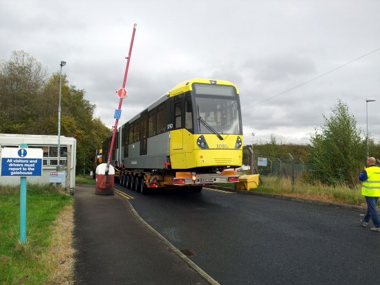 As we reported last week the latest M5000 to be delivered to Manchester was due to arrive on Saturday 25th October and we featured it as it waited at Rotterdam docks for onward travel to the UK. As planned 3090 arrived at Queens Road Depot during the late morning of 25th October and Benjamin Worsley was on hand to record the arrival and has provided us with these photos.