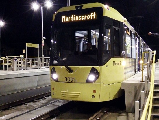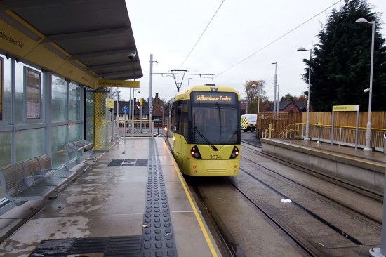 Over the weekend of Saturday 22nd and Sunday 23rd November there were some unusual destinations for LRVs on Manchester Metrolink’s Airport line. On the Saturday one of the four cars which have recently ended up on the Airport line caused disruption which meant that some services were unusually terminated at Martinscroft whilst on the Sunday early morning engineering works meant trams were having to stop at Wythenshawe Centre. Steve Kemp was on hand to record these destinations on camera.