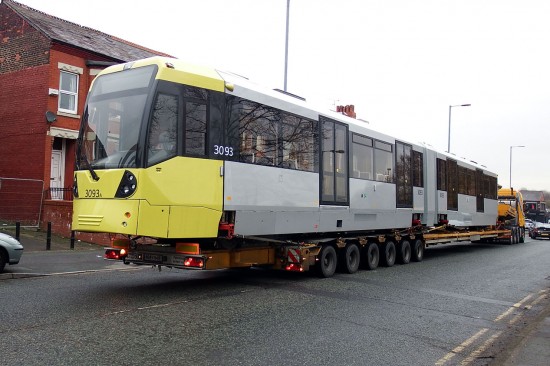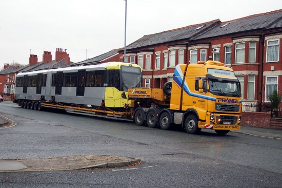 Last week we reported on the entry into service of Manchester Metrolink’s 3092 and the arrival of 3093 and now, with thanks to Steve Kemp, we are able to illustrate both of these events. 3092 performed its first revenue earning journeys on 3rd December operating on the Ashton-under-Lyne to Eccles service and then on 6th December 3093 became the (expected) last new LRV arrival of 2014 when it was delivered to Queens Road Depot.