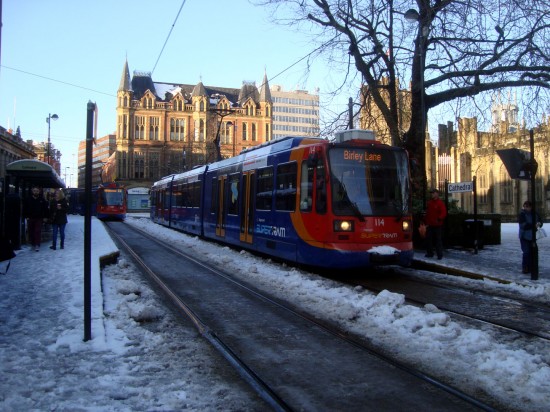 Snow – it looks nice and is lovely when you don’t have to go anywhere but it can also cause major travel chaos and that is exactly what happened on Stagecoach Supertram after a 4” snow fall starting on Boxing Day in South Yorkshire meant services were severely affected. With staff members unable to get into work, frozen points and the problem of motorists abandoning their vehicles on the tracks Saturday 27th December proved to be a difficult day for Supertram but despite these setbacks a service was operated across all of the network by the end of the day, with the exception of the Purple route to Herdings Park.
