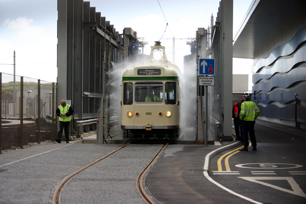 In the final year of the traditional Blackpool Tramway in 2011 there were no passenger trams to Starr Gate - at least in service! On 13th September 2011 it was a case of being in the right place at the right time as Coronation 660 was being used to test the tram wash at the new Starr Gate Depot.