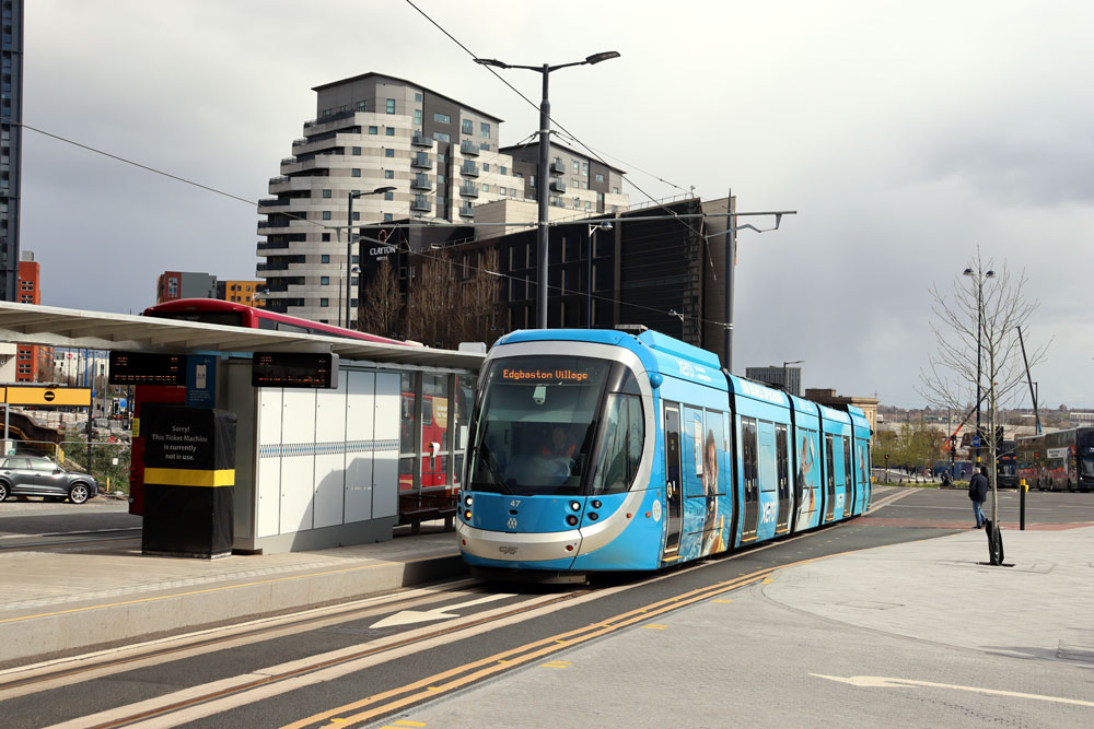 This collection of photos comes from the West Midlands Metro with all images captured on camera on Wednesday 25th March 2026. During this visit driver training was underway on the first phase of the Birmingham Eastside extension as far as Millennium Point, and that is where this set starts. Trams running from the reopened Wolverhampton St George's were terminating at Bull Street to then head onto the extension via the delta junction at Bull Street/Corporation Street. After heading up to Millennium Point they then returned to the delta and started to pick passengers up again at Corporation Street for their journey to Edgbaston Village. On the return from Edgbaston Village they ran direct without heading back onto the extension.