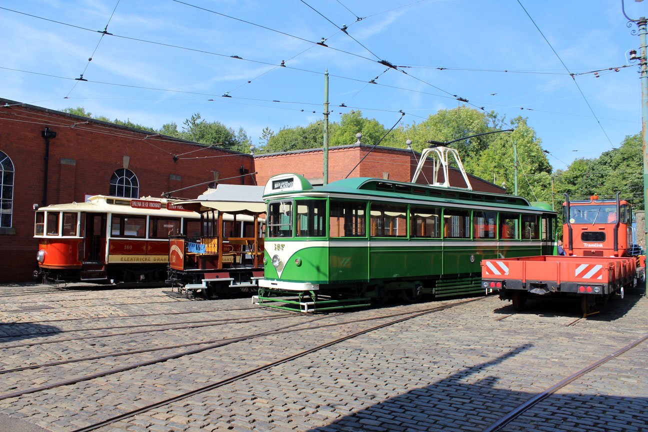 The big depot fan line-up saw many of the birthday trams line-up together. On the far side we have Prague 180 (110 years old and 50 years since arrival at Crich), Blackpool & Fleetwood 2 (120 years old), Blackpool 167 (90 years) and Croydon Tramlink 058 (40 years).