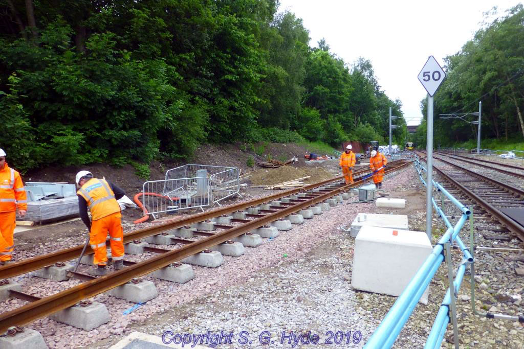Looking south from Crumpsall showing the new track being put into place leading to the new platform face.