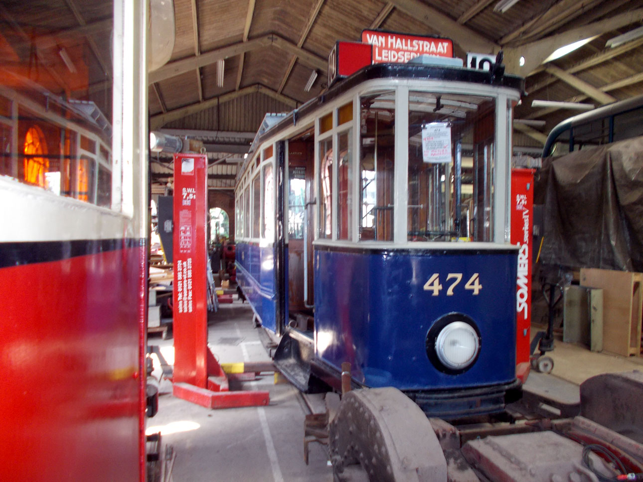 Another view of 474 in the depot. London Transport 1858 is to the left.