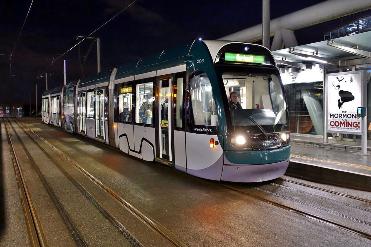 206 in fleet livery again after refurbishment is seen arriving at Nottingham Station heading for Hucknall.